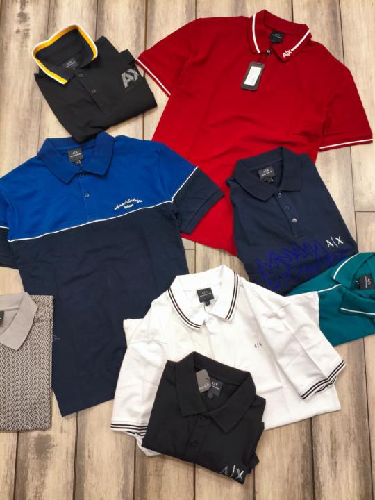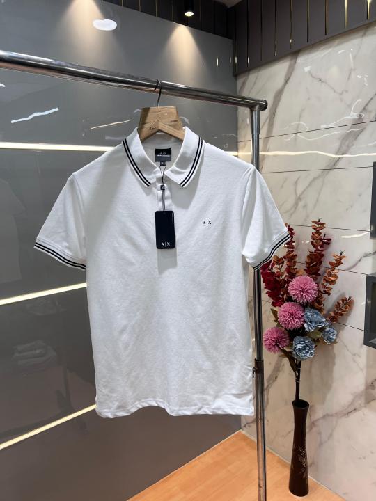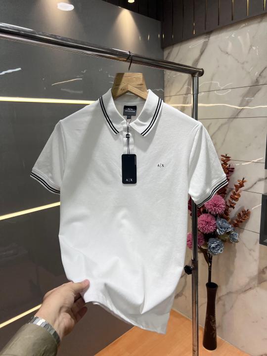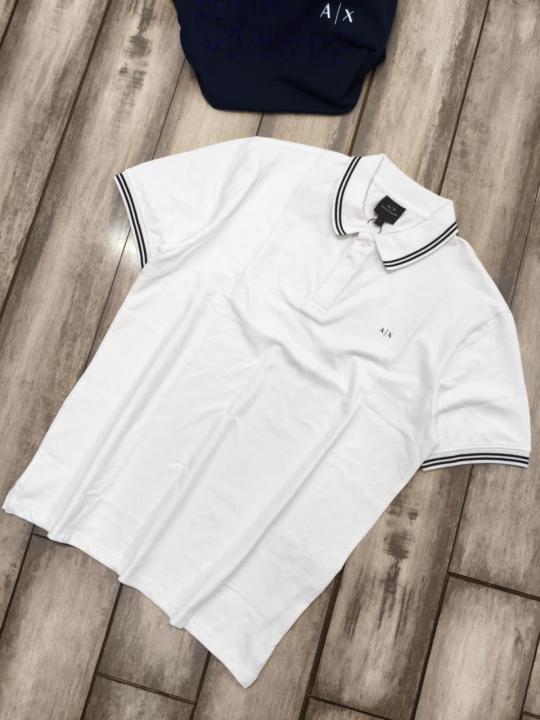Home T-Shirts Arman i Exchange White Premium Cotton Lycra Pique fabric Polo Tshirt with Collar Design and Emboss Logo 3159